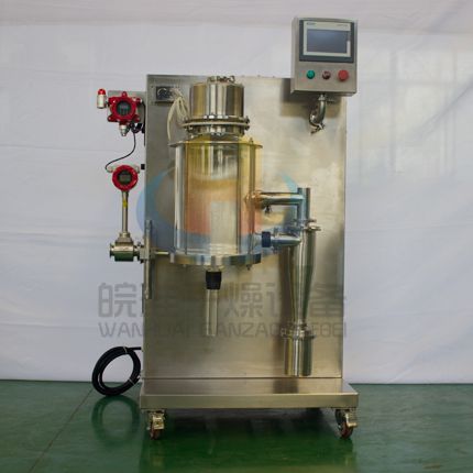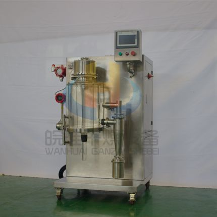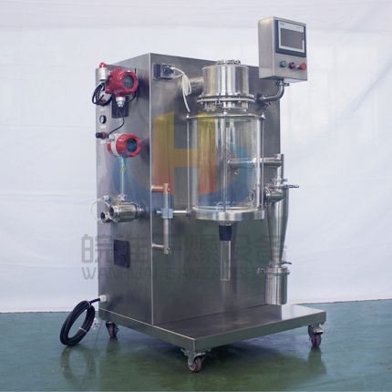 小型噴霧干燥機(jī)小型噴霧干燥機(jī)主要在科研階段對(duì)溶液或流體樣品進(jìn)行噴霧干燥成粉或微小顆粒。其原理是通過(guò)霧化器將樣品霧化成微細(xì)霧滴,進(jìn)入干燥室內(nèi)進(jìn)行熱交換,水份瞬間蒸發(fā),固體經(jīng)過(guò)旋風(fēng)分離器進(jìn)行回收,飽和氣體經(jīng)過(guò)除塵器過(guò)濾后排空,本設(shè)備可應(yīng)用于從試驗(yàn)室到一般研究室的噴霧干燥作業(yè),在食品醫(yī)藥化工行業(yè)均可良好的應(yīng)用。