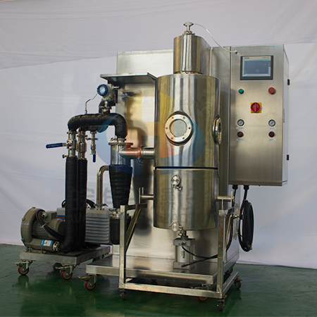 1、噴霧冷凍干燥機把噴霧干燥和真空冷凍干燥二者有機的結(jié)合起來,所需的干燥時間極短,極大的縮短了傳統(tǒng)的真空冷凍干燥時間,且干燥后的物料為粉狀的固體,經(jīng)噴霧冷凍干燥的物品,原有的生物、化學特性基本不變,易于長期保存;