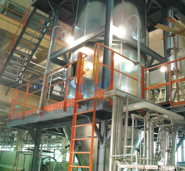 壓力式噴霧造粒干燥機主要由供料系統(tǒng)、干燥系統(tǒng)、除塵系統(tǒng)、加熱系統(tǒng)和電器系統(tǒng)組成,而每一系統(tǒng)又包括一些相關設備。
